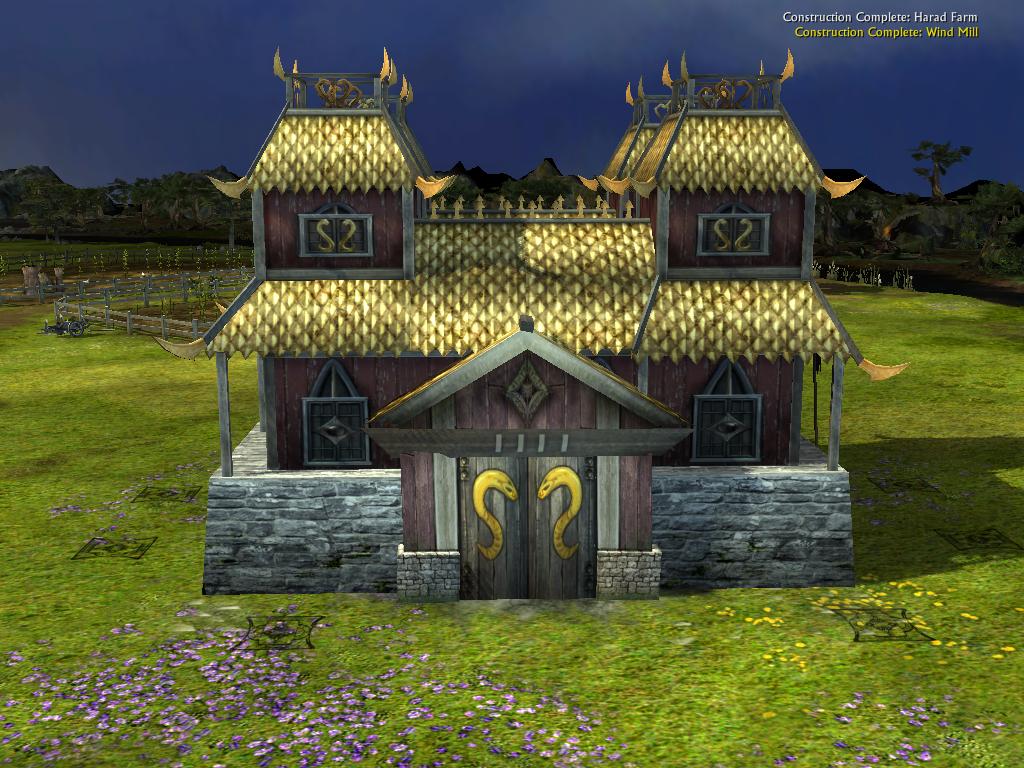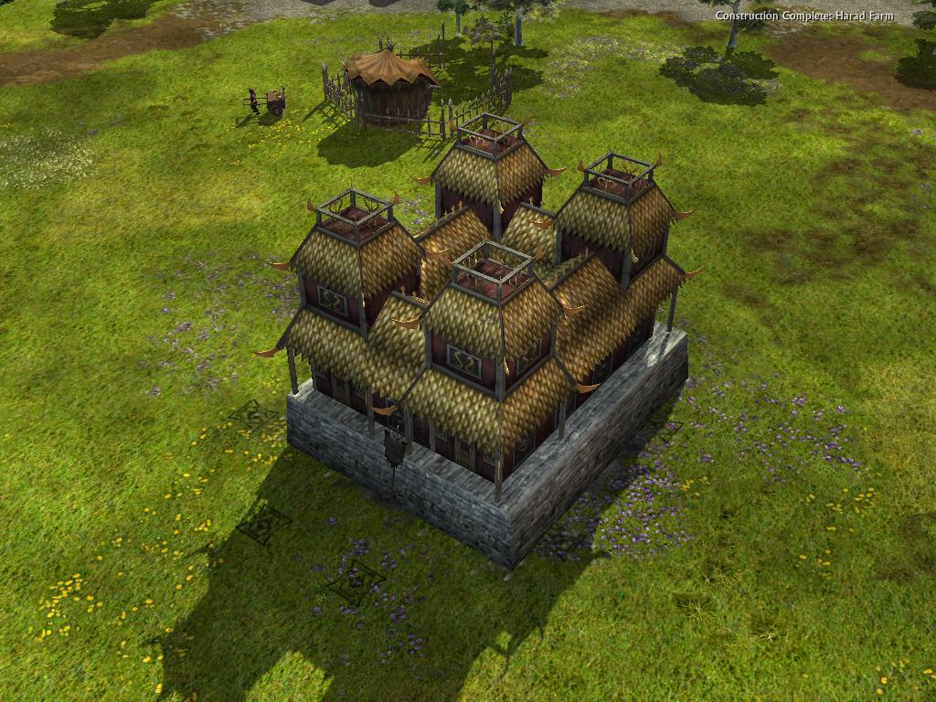 3) Now it's on to the animations. I've re-done the bulid-up animations for the Harad Farm & Rhun Battle Tower for the new mapping plus improving some of the animation. I've also done the build-up animations for the re-worked buildings - Harad Armory, Harad Stables, & Rhun Windmill. Click the image to view the animation.